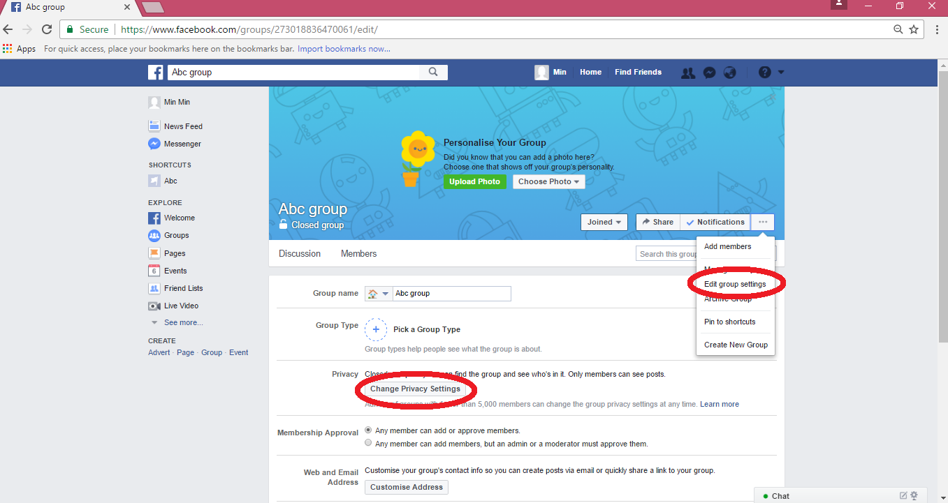 - You can make your group setting public or private or closed anytime by visiting to the “Change privacy settings” from “Edit group setting”.